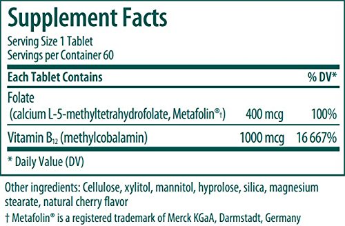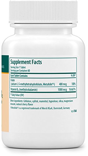 Vitamin B12 formula with Metafolin® (L-methylfolate) in a natural cherry-flavored chewable format for convenient patient compliance. Metafolin® [(6S)-5-methyltetrahydrofolic acid‚ calcium salt or L-methylfolate] is a patented pure form of the naturally-occurring predominant form of folate. "Folates" is the term comprising all the various folate forms‚ including folic acid. Folates are water soluble B Vitamins that play a key role for a variety of biochemical reactions. Green leafy vegetables in particular are rich in folate.