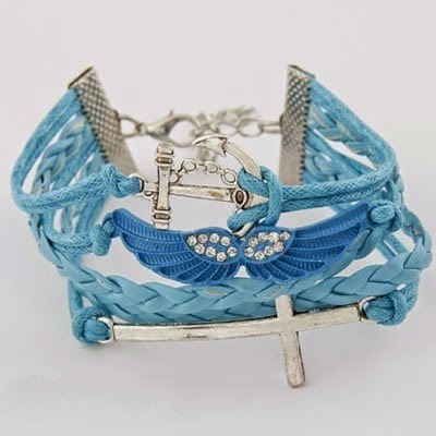 Gelang Korea Multi Charm Salib, Wings & Jangkar Biru