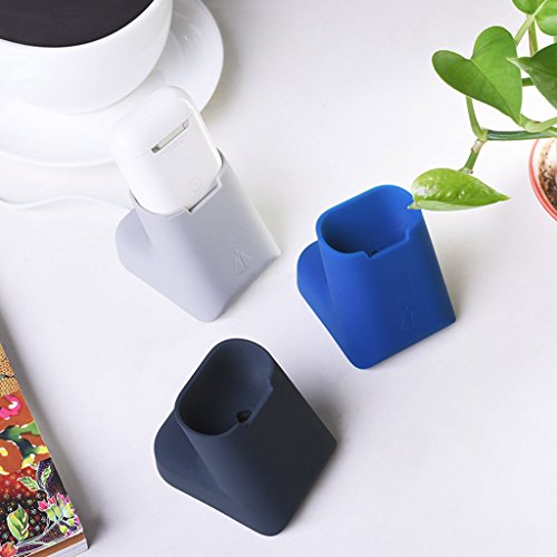 -. Feature : Compatible with: Apple Airpods Wireless Bluetooth Headsets. / Protable and weightlight, easy to carry and use whenever you need. / Soft Silicone rubber material,not easily infected with dirt stains,easy to clean. / Earphones desktop charging case dock stand charger station cable winder holder. / Built-In thread winder,provides a convenient and safe wire management programs.