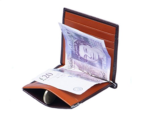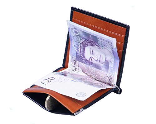Studio : SageBrown Publisher : SageBrown Binding : Apparel Product Description SageBrown has combined two of it's best sellers to create the ultimate compact wallet solution. Hand-made in fine calf leather there is a choice of classic and contemporary colours. The front is a classic style coin holder with a spring fastening. Simply squeeze either end and the purse opens let go and it snaps closed. Inside there is a silver metal money clip in the middle to secure notes and on the right there is space for three credit cards. On the reverse there is a handy pocket for receipts etc. If you are looking for traditional compact slim wallet for a few essential cards notes and coins this is it. It is neat and fits discreetly into your back pocket keeping all methods of payment together in one convenient place. Please note the price difference according to plain or two-one colour combinations. 0