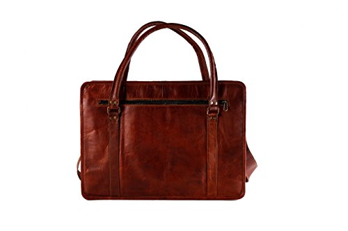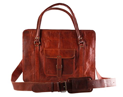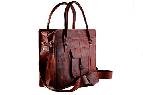 -. Feature : Genuine High Quality Leather with canvas lining / Size 18" width x 13" height x 5" depth / Big Front pocket for mobile, cash etc, Lockable main compartment. / 2 small inner compartments and 1 big inner compartment / 1 inner and 1 outer zipper compartment and adjustable shoulder strap