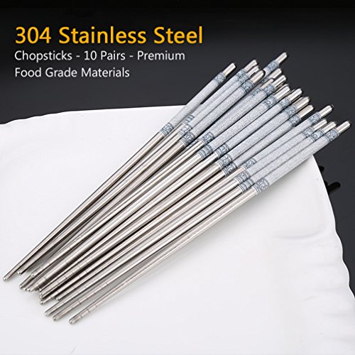 - Premium Food Grade Materials: Our Steel Chopsticks are made from high quality stainless steel 304, will never rust or break, very strong and sturdy, Anti-skid and Anti-hot, beautiful and stylish. It's ideal for any Asian-style dinner party, Sushi Night, noodle soup and any Asian features party.