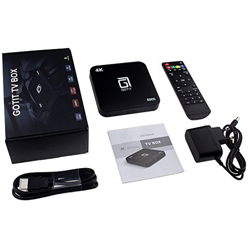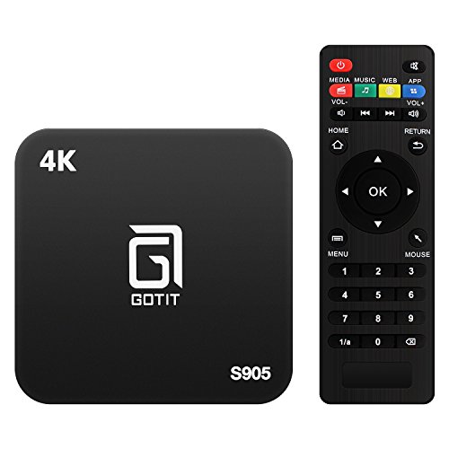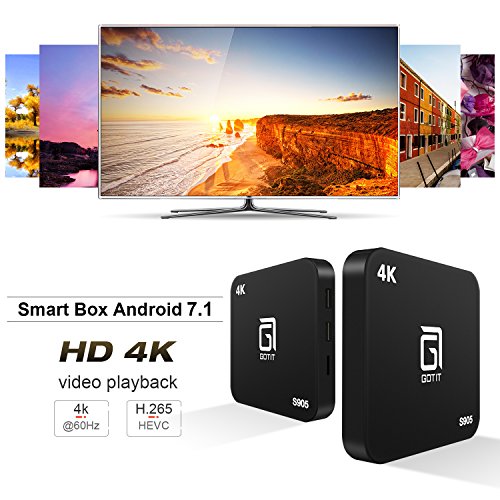 -. Feature : GOTiT Smart TV Box runs Android 7.1 Marshmallow, it's the operating system of multimedia player, faster,stable, and much more efficient! 1G RAM/ 8G ROM, 32G Max Extended Capacity brings you more space to browse helpful websites, play exciting games watching movies. / TV Box has Amlogic S905W up to 2.0 GHz, Quad core ARM Cortex-A53 CPU, Mali-450 penta-core, up to 750MHz + (DVFS) GPU. High level configuration gives you ultra-fast running speed and professional image processing ability.Bult-in 2USB/AV/RJ45/HDMI/SPDIF/OTG/TF Port. / Android box carries professional H.265 decoding technology gives you the same screen quality with less bandwidth occupation. WIFI 2.4GHZ offers a more stable WIFI signal to enjoy a higher quality experience. 4K HD Quality up to 2k output shows you a much clearer TV world. / GOTiT smart TV box has HDMI cable and AV cable. Four High speed 2.0 USB ports are multiple provided to connect your mouse or keyboard. / It is not only the streaming devices for tv devices, it also support Skype chatting, Picasa, Youtube, Facebook, and internet searching, thousands of android applications and games.