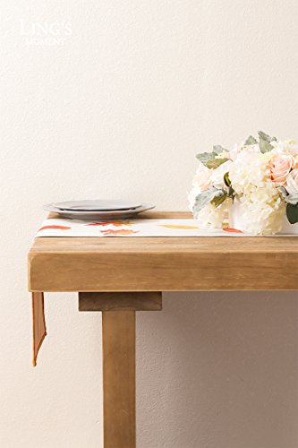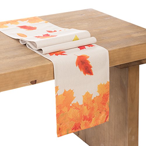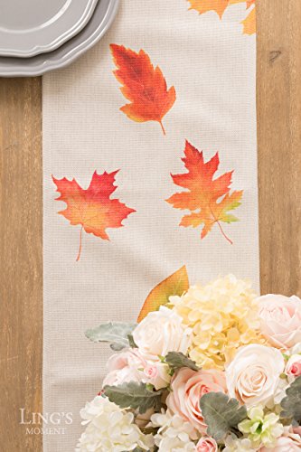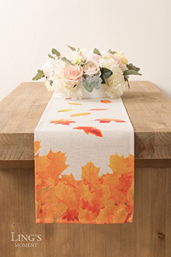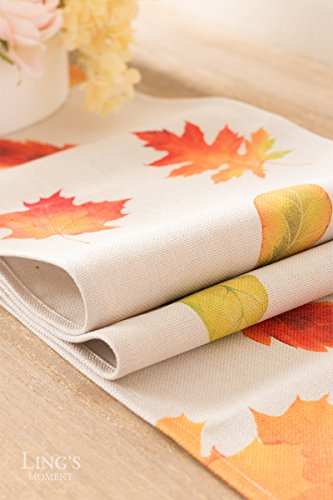 LING'S MOMENT DURABLE TABLE RUNNER IMITATED LINEN WRINKLE-FREE MAPLE LEAVES DESIGN FOR FALL / THANKSGIVING MACHINE WASHABLE 12 X 72 INCH