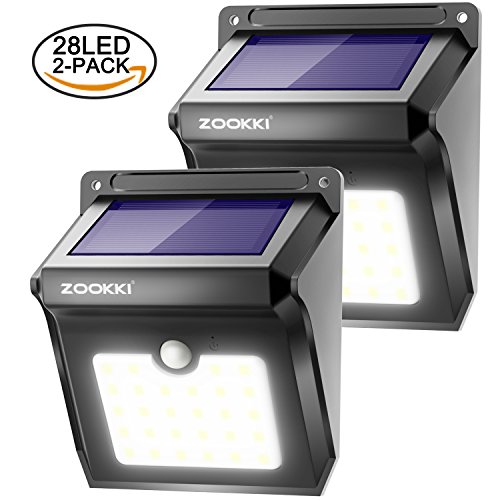 Zookki Wireless Solar Lights 28 LEDs Solar Powered Motion Sensor Light Rechargeable Waterproof Security Wall Lights for Outdoor Outside Garden Driveway Patio Yard Pathway-2 Pack