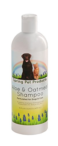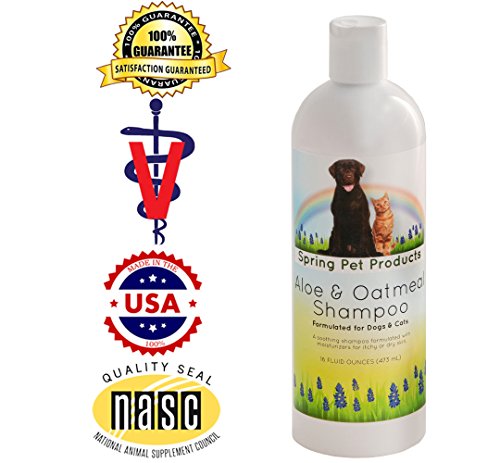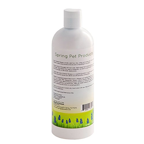 Spring Pet Aloe and Oatmeal Shampoo for Dogs and Cats with Nano-Encapsulated Vitamins A,C,D,E & F for Relief from Itchy, Scaling and Sensitive Skin ~ Contains Emollients to Restore Natural Moisture to the Skin ~ Hyopoallergenic ~ Soap Free ~ Safe for use