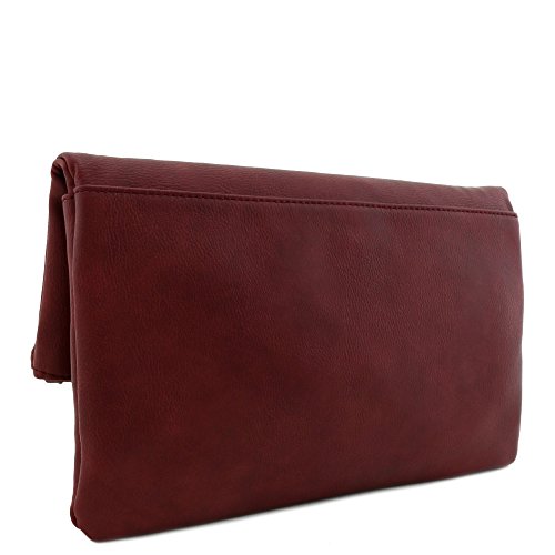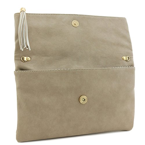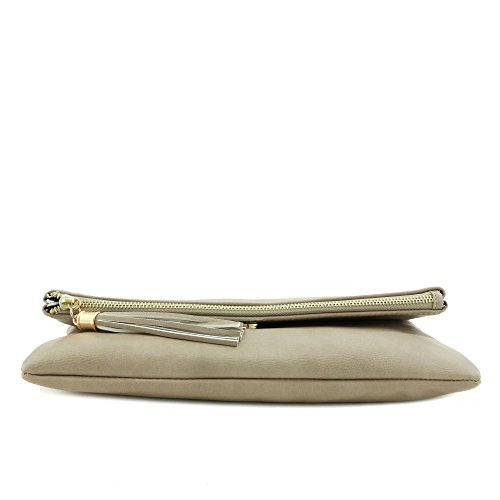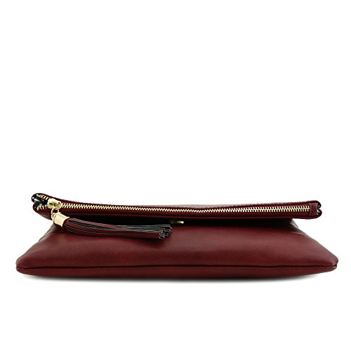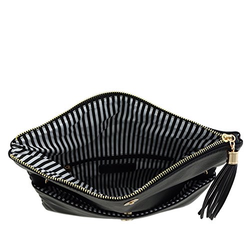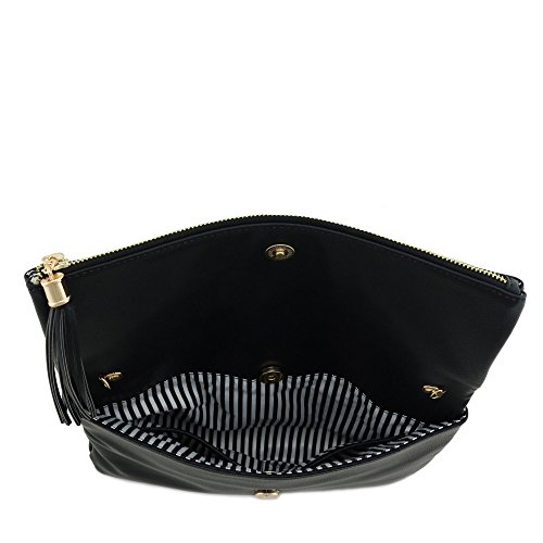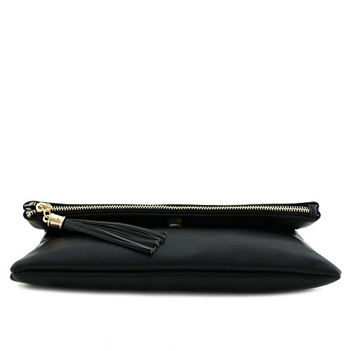 -. Title : Tassel Accent Flapover Clutch Purse with Chain Strap