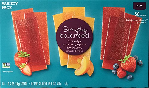 Simply Balanced Fruit Strips Strawberry, Apricot & Wild Berry Variety Pack, 48 - 0.5 oz Strips