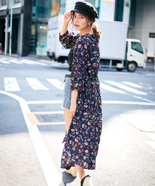 | 実寸 | 着丈:115 肩幅:39 身幅;:96 ウエスト:74-112 袖丈:40 袖口:12-20 裾幅:146 |