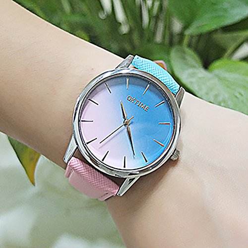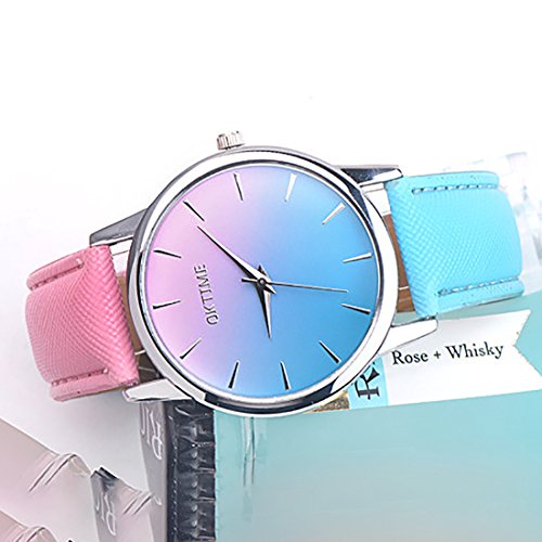 -. Title : Women Dress Wrist Watch Casual Colorful Strap Business Analog Watch with Iridescent Leather Band