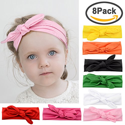 - 8 Pack Baby Girl's Turban Knotted Headbands. Elastic Headband Suitable for 0 to 6 years old Baby and girls.