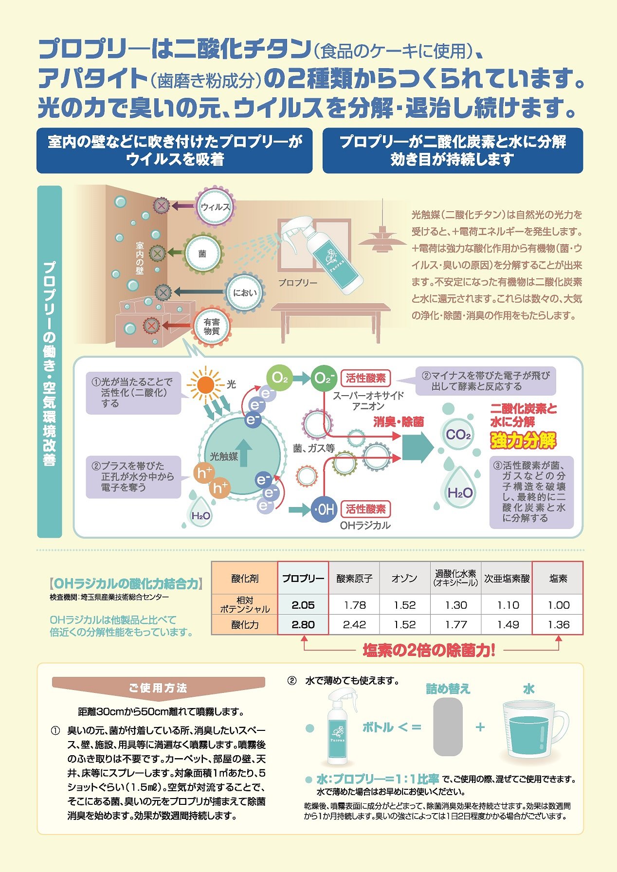 ※ 1 Titanium oxide = food additive · Because it is a semiconductor, it demonstrates sterilization and deodorizing power by light energy.