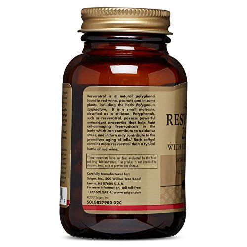 ReleaseDate : 2015-06-22 Studio : Solgar Publisher : Solgar Binding : Health and Beauty Product Description Resveratrol possesses antioxidant properties that help fight cell-damaging free radicals in the body which can contribute to oxidative stress, and in turn may contribute to the premature aging of cells. Each vegetable capsule contains more resveratrol than a typical bottle of red wine. Natural polyphenol found in red wine, peanuts and in some plants. Suitable for vegetarians. 0