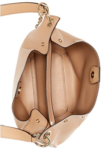 This pebbled faux-leather hobo bag features a slouchy silhouette, silver-tone hardware and a logo accent. Multiple interior pockets and snap closures. Removable logo charm.Feature
