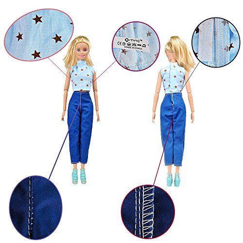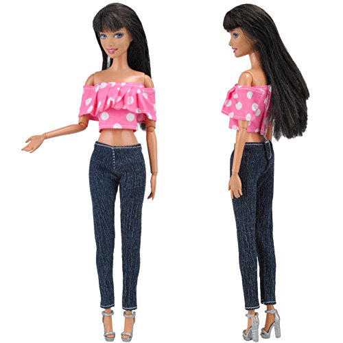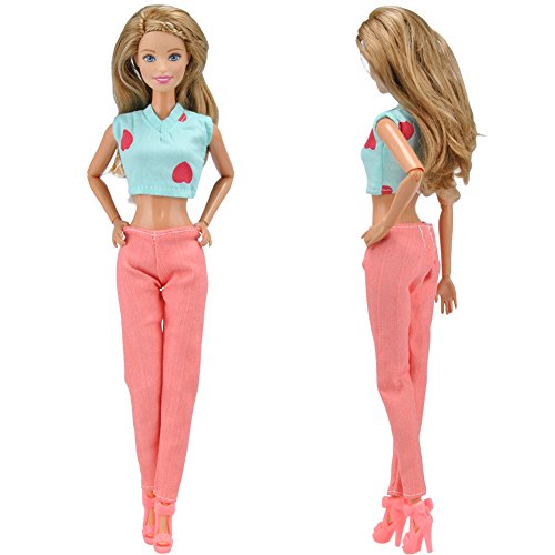 This Barbie doll clothes includes 5 Tops and 5 Pants,Perfectly fits for Barbie Dolls and other dolls of the similar size.
