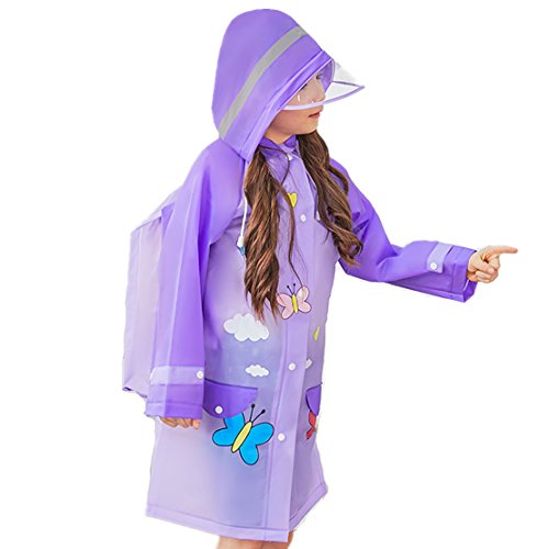 -. Title : Chilsuessy Rain Coat for Boys, Girls and Toddlers with Hood Poncho Rainwear Reflective with School Bag Cover,Size 4-15 Years old