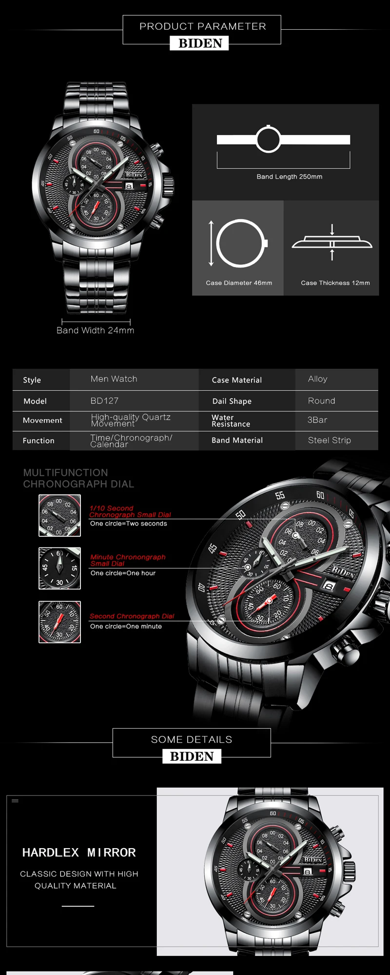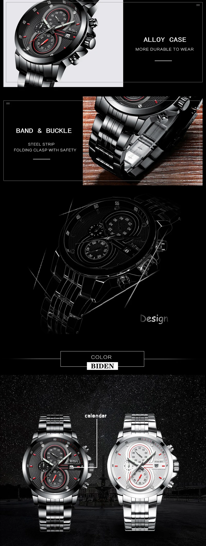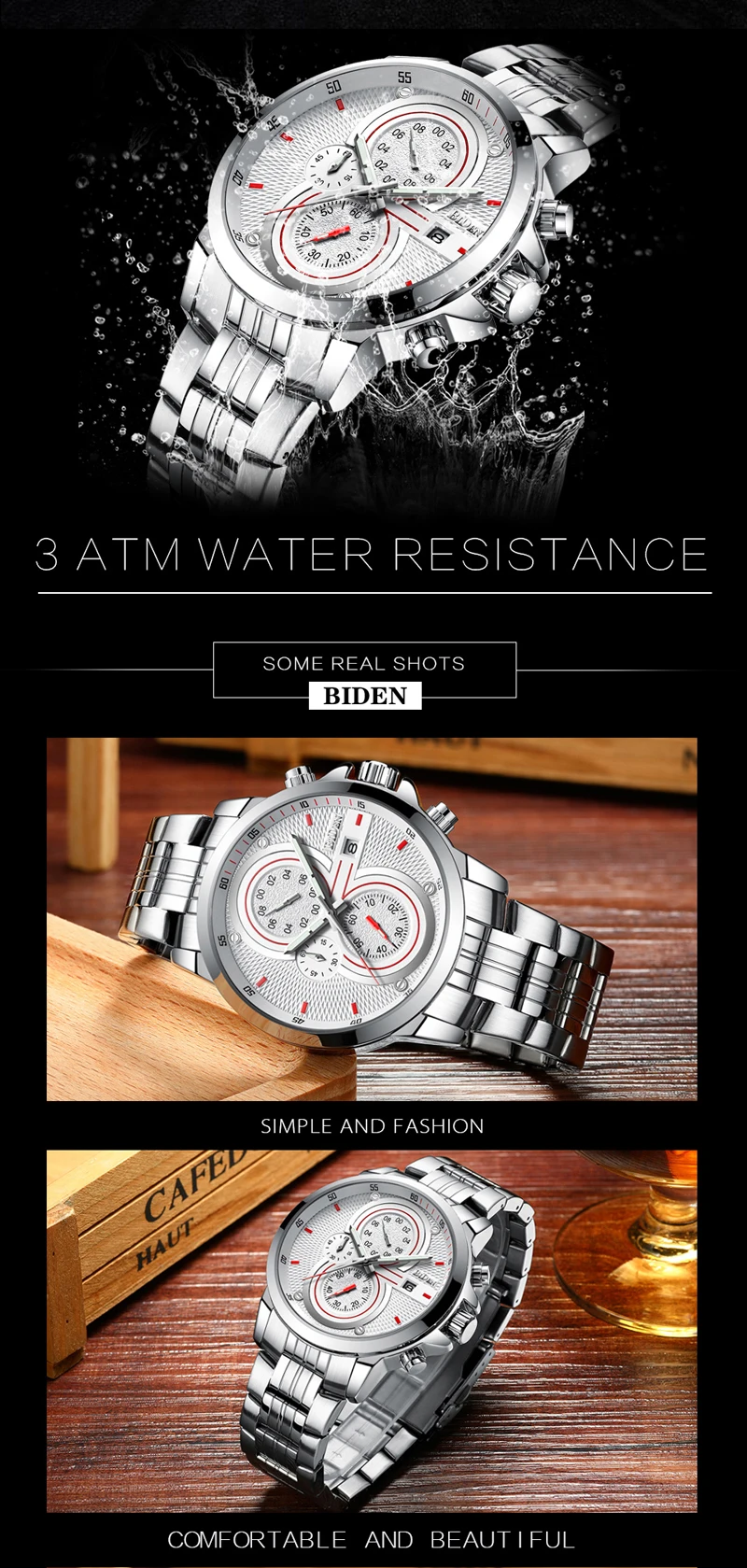 Feature:Water Resistant,Auto Date,Shock Resistant,Chronograph
