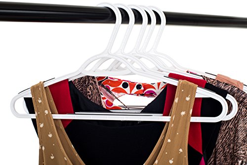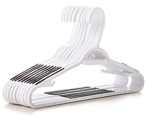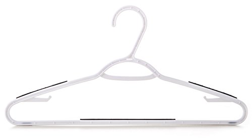 10 pc White Plastic Hangers with Built-In Grip Strip Non-Slip Pads - Perfect for Dresses, Blouses and Pants - Work Great for Shirts, Ties, Scarves and Sweaters