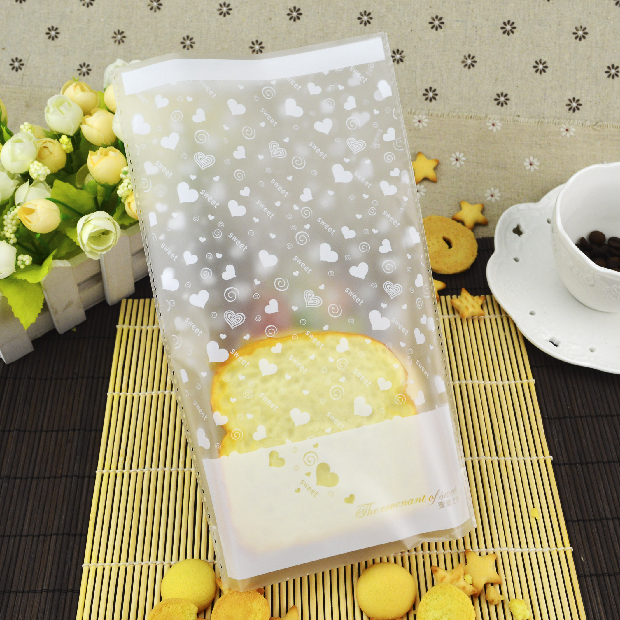 饼干包装袋 蜜意之约磨砂齐口面包袋子 烘焙包装袋100个