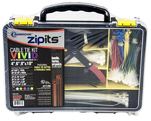- Cambridge Zipits 700 pc Cable Tie Kit Assortment. BONUS includes Cutting Tool & Reusable Storage Case
