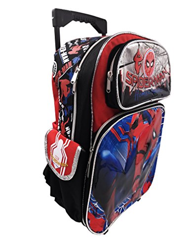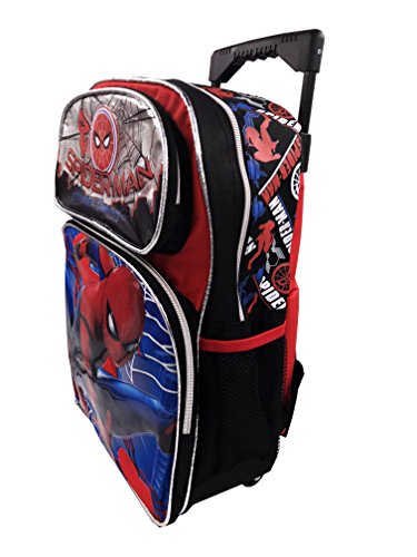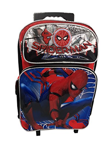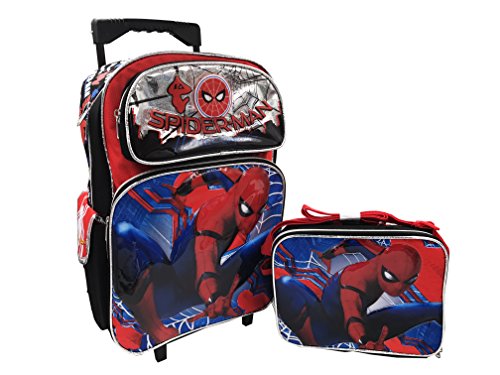 Spiderman Homecoming Large Rolling Backpack and Lunch Box, with Spiderman Graphic on the front. Insulated Lunch Bag with one side meshed pocket and Adjustable shoulder straps. Backpack has Two Front pockets with zipper closure, Adjustable shoulder straps, One side velcro-closure pocket, and one side meshed pocket. Back Pack Measures around : 16"H x 13"W x 5"D Lunch Box Measures around : 10" x 8" x 3"Feature