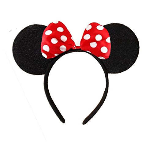 Black with red or pink bow & white polka dot Minnie mouse Disney fancy dress ears head band.