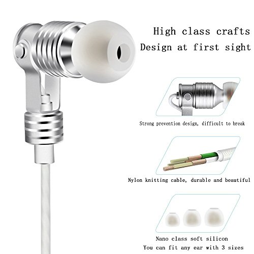 Hybrid Earphone Metal Stereo Headphone with Remote Control Handsfree Call Heavy Bass HIFI Canal Earphone Silver