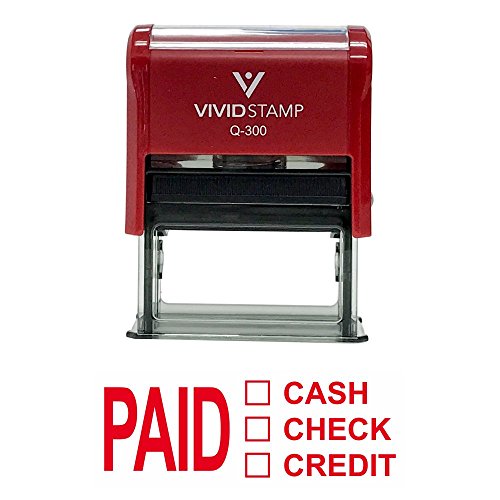 PAID CASH CHECK CREDIT Self Inking Rubber Stamp (Red Ink) - Large