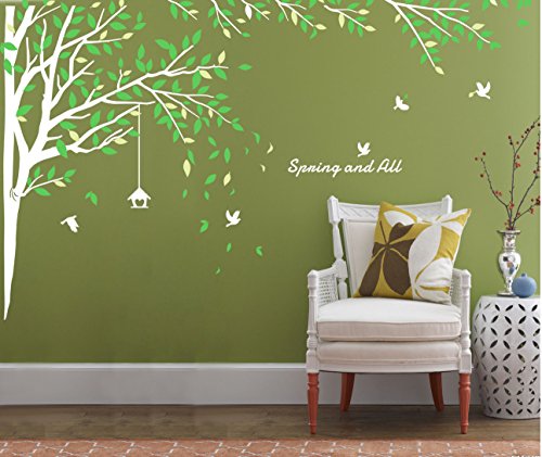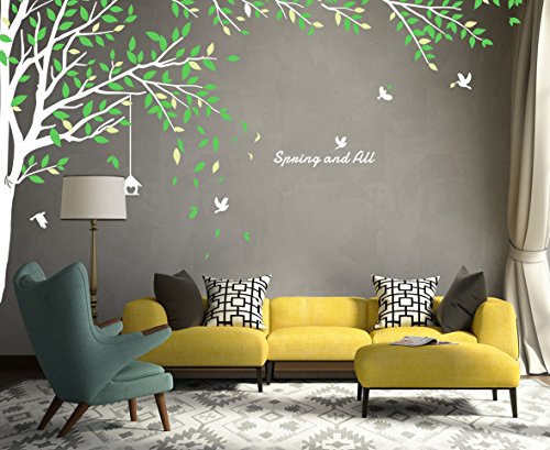 LHKSER Wall Decals/Family Tree Wall Decal/Blowing Spring Blossom Tree with Birds Vinyl Wall Stickers (White)
