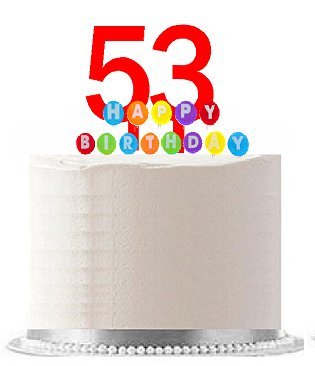 Item#053WCD - Happy 53rd Birthday Party Red Cake Topper & Rainbow Candle Stand Elegant Cake Decoration Topper Kit