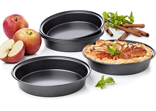 - BAKE PERFECT PIES EVERY TIME. Our pans are oven-safe up to 500 degrees fahrenheit. Heavy gauge metal spreads heat evenly for optimal baking results.