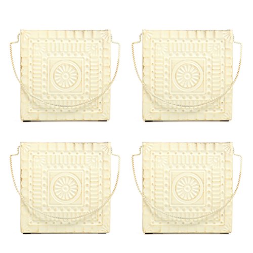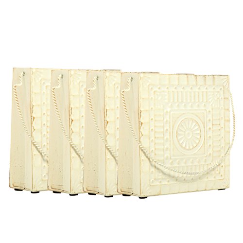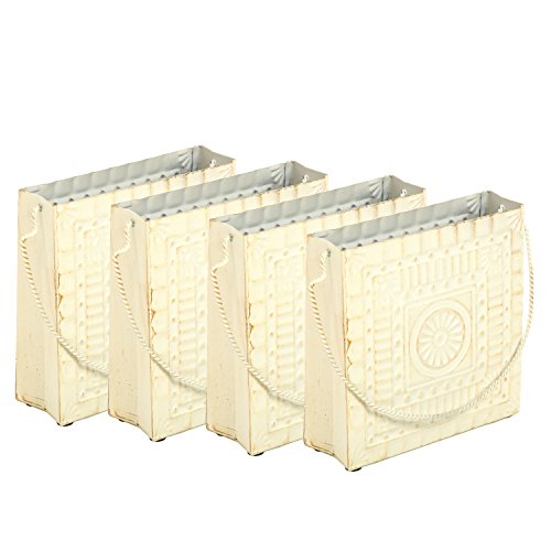 Hosley's Set of 4 Cream Metal Hanging Planter / Tote, Tussy-Mussy, 4.5" High. Ideal Gift for Weddings, Artificial Floral, Storage, Gardens P9