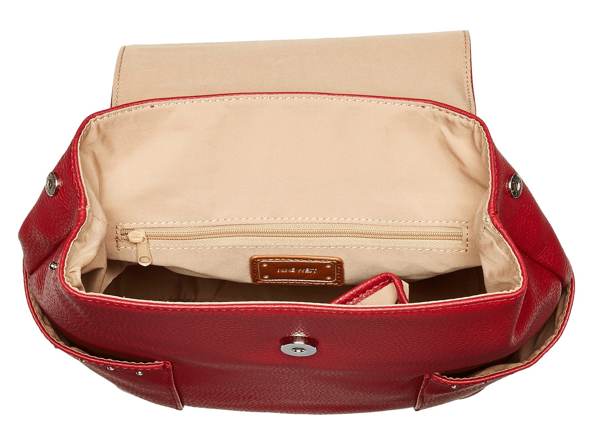 | Product Information SKU: #9041595Freshen up your backside with the stylish Nine West? Saidee Backpack. Made of synthetic leather. Button-snap flap closure. Grab handle at top with adjustable shoulder straps. Exterior features studded pouch pockets at each side.Lined interior with back wall zip pocket.Imported.This product may have a manufacturer's warranty. Please visit the manufacturer's website or contact us at warranty@support.zappos.com for full manufacturer warranty details.Measurements: Bottom Width: 9 in Depth: 5 in Height: 11 in Strap Length: 32 in Strap Drop: 15 in Handle Length: 8 in Handle Drop: 2 in Weight: 1 lb 2.6 oz |