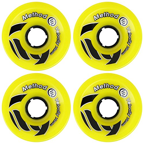 Studio : Keystone Skate Supply Publisher : Keystone Skate Supply Binding : Sports Product Description Method velocity wheels are aggressive wheels that promote quick turns with good control and excellent pump ability. These fast, smooth wheels are for all types of longboarding. The velocity wheel shape is designed to counteract the extreme shear stresses of aggressive carving. Highest quality precision urethane available. Anti-shear profile. Only california made urethane. 0
