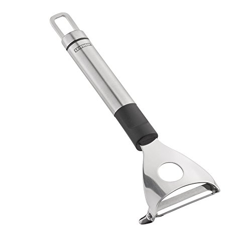 - Stainless steel Y-peeler with wider cutting surface for peeling fruits and vegetables