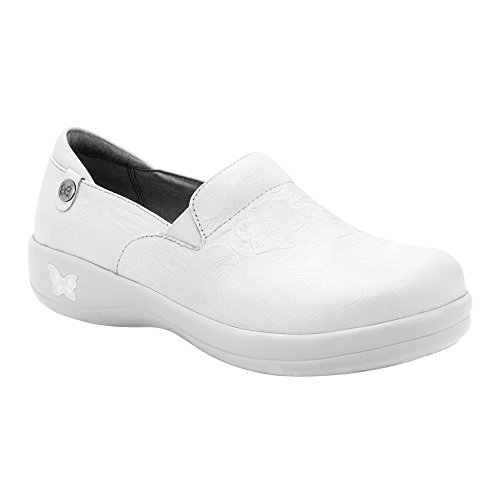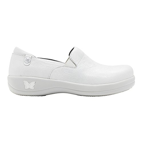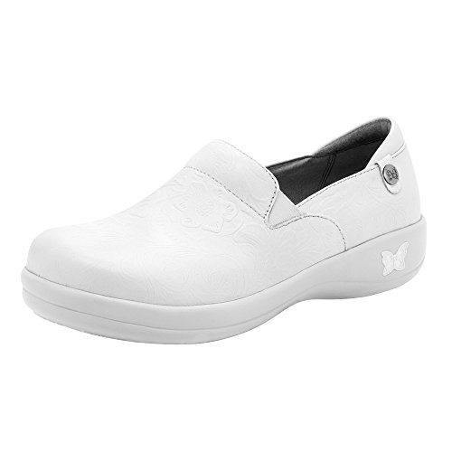 Studio : Alegria Publisher : Alegria Binding : Apparel Product Description Experience a burst of energy with every step you take in the Alegria Keli Pro shoe. Offered in a selection of premium leathers and finishes, this women's professional, closed-back clog boasts a generous toe box and padding at the instep and back collar to protect from chafing. Inside, the removable, replaceable "Perfect Fit" footbed combines cork, latex and memory foam to deliver personalized comfort and support. The Alegria Keli Pro work loafer is finished with a slip-resistant polyurethane sole engineered to reduce pressure on the central metatarsal and heel, absorbing shock and offering steady traction as you move through your busy day. 0