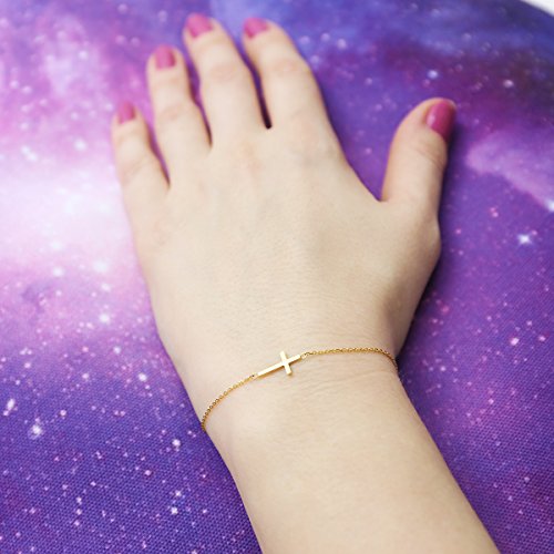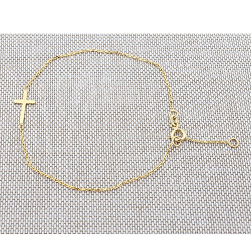 The cross measures 7mm (5/16 in) x 13mm (1/2 in). The bracelet is 0.9mm thick and is 7 1/2 inches long, but can be adjusted to 7 inches. The bracelet weighs 0.96g.