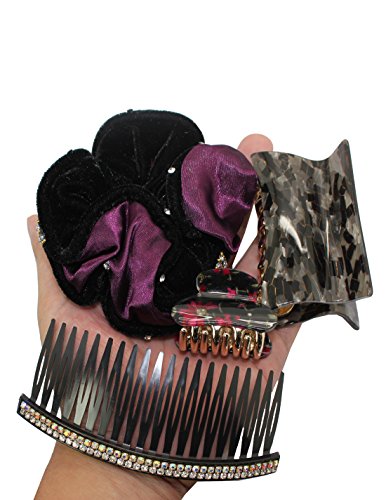You will receive 2 hair claw clips, 1 hair comb and 1 scrunchie.