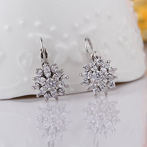 ♥MATERIALS & MEASUREMENTS♥ White Gold Plated Brass+ White AAA CZ, Necklace chain size: 17+2in, Pendant size: 1.6in, Earring size: Length 0.9in, flower diameter 0.6in