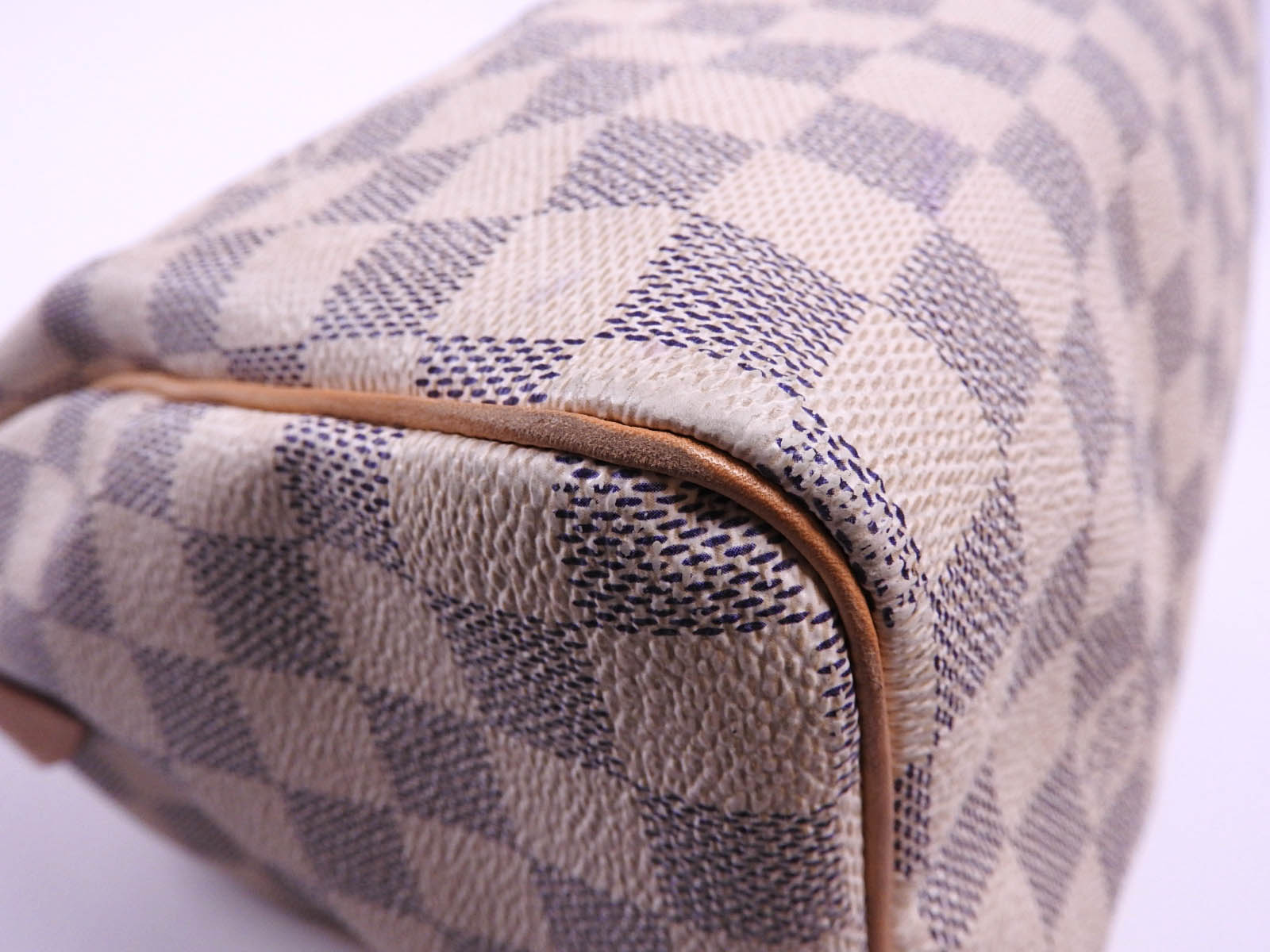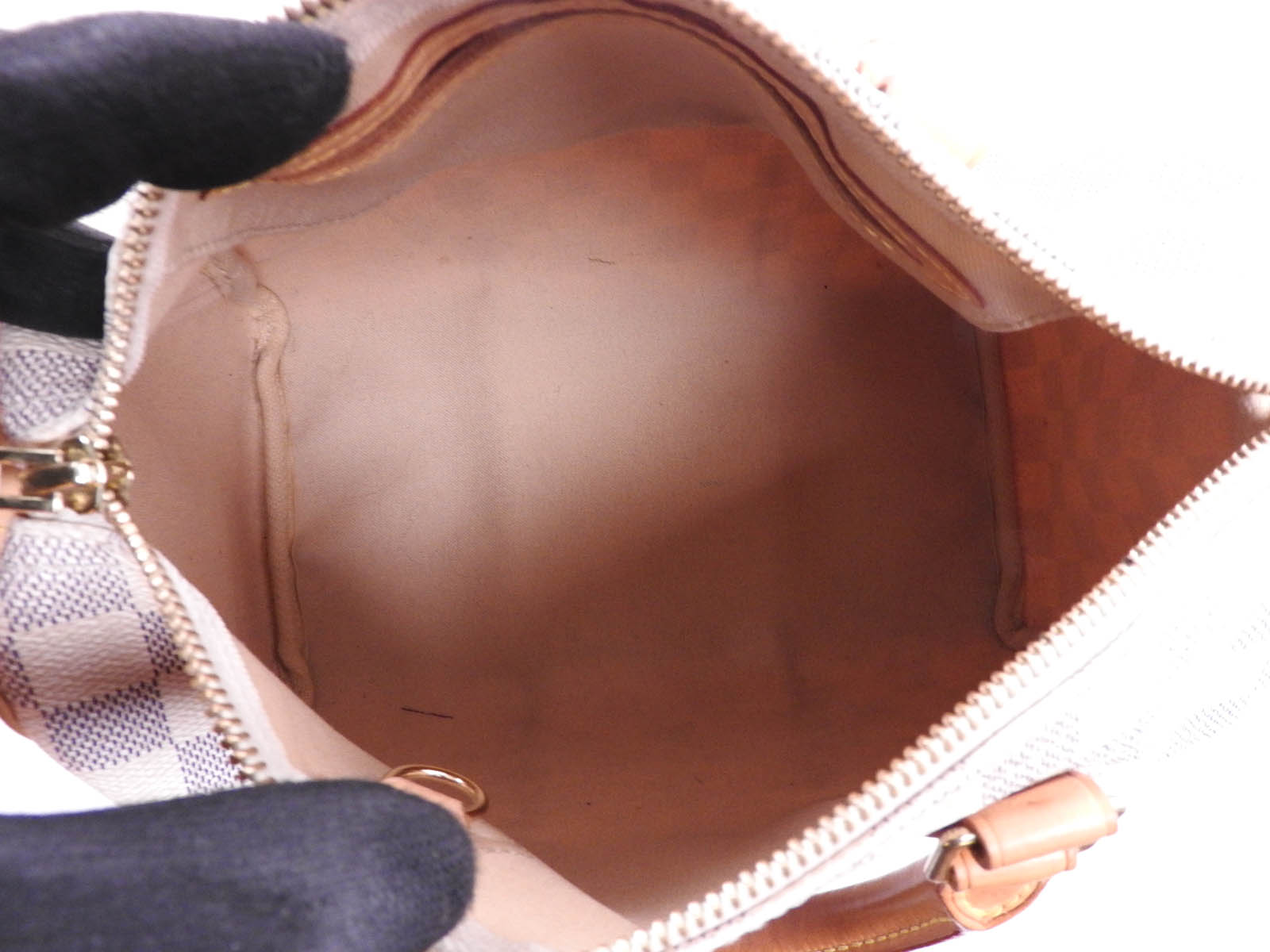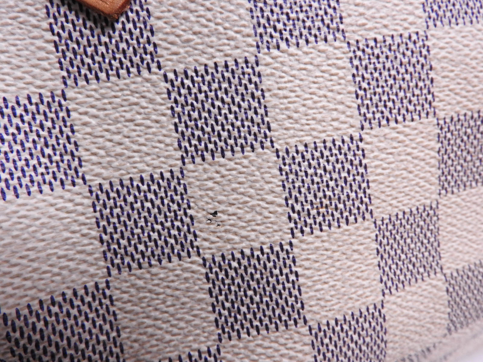 | Exterior | Damier Azur canvas: Used feeling. Small stains, some abrasions and slight tanning.? ? Leather: Used feeling. Some stains and tanning. |