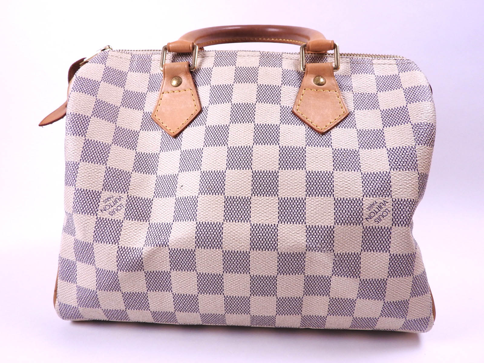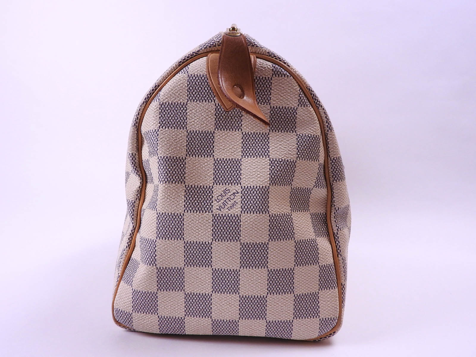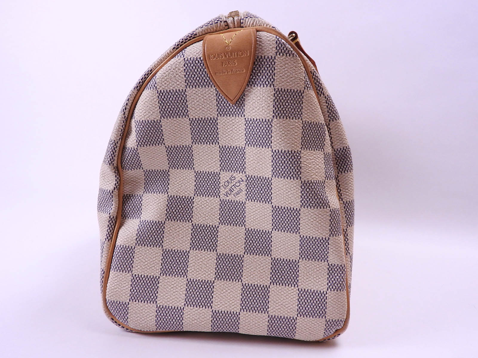 | Exterior | Damier Azur canvas: Used feeling. Small stains, some abrasions and slight tanning.? ? Leather: Used feeling. Some stains and tanning. |