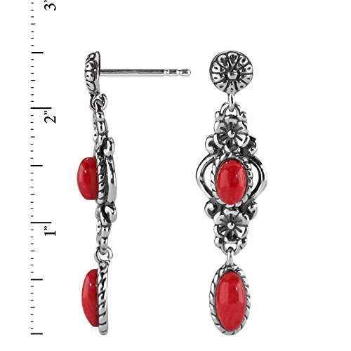 Linear and lovely, these dainty earrings spotlight a pop of color in an exquisite floral setting that makes the earrings extraordinary. From a sterling silver flower at the post, an oval sea bamboo cabochon draws the eye to its setting, with additional blossoms of silver above and below it. A second cabochon dangles below -- the perfect finishing touch.Feature