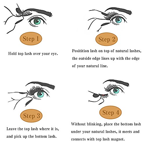 - *UPGRADED CONTAINER FOR THE FAKE EYELASHES: Instead of holding by glue, these 4 pcs eyelashes are held into the container by a glittery magnetic back plate, they can be easily stored and removed from it.With proper care, you can reuse the magnetic lashes for many times.