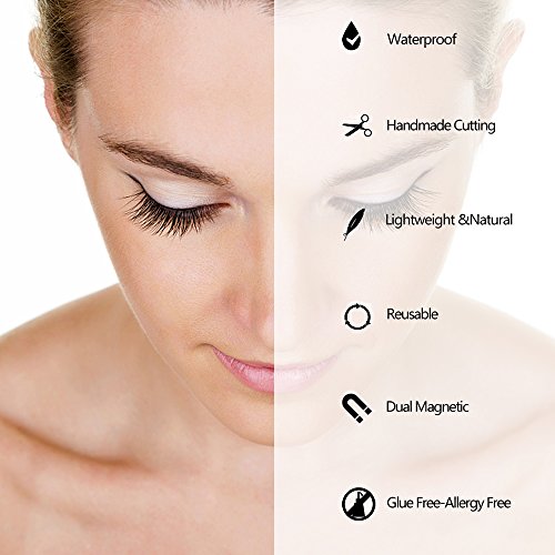 - *NO GLUE REQUIRED MAGNETIC EYELASHES: Instead of using sticky glue, the fake eyelashes are designed with dual magnet, they won’t cause irritation to your eyes or damage to your natural eye lashes.