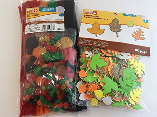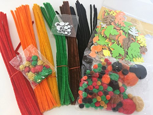 Product Description Fall Craft Kit in Harvest Colors Includes Pipe Cleaners, Pom Poms, Google Eyes and Assorted Autumn Stick On Leaves 0