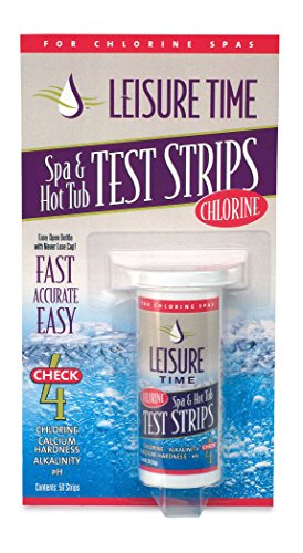-. Brand : LEISURE TIME -. Feature : Dip a strip in the spa or hot tub water, and compare to the color chart on the back of the bottle / Test strips test spa water for pH, total alkalinity, calcium hardness and chlorine / Compatible with chlorine and ozone sanitizers / Contains a quantity of 2 50ct. Bottles, for a total of 100 test strips -. Label : Leisure Time -. Manufacturer : Leisure Time -. MPN : 45010A-2pack -. PartNumber : 45010A-2pack -. ProductGroup : Lawn & Patio -. ProductTypeName : OUTDOOR_LIVING -. Publisher : Leisure Time -. Studio : Leisure Time -. Title : Leisure Time Chlorine Test Strips 45010A (50 count) - 2 Pack