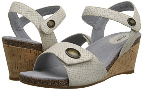 Women's Soft Walk, Jordan Mid Heel Wedge Sandal This clean style will cradle your feet in comfort! Leather upper with metal ornaments Two adjustable hook and loop closure straps for a secure fit Smooth leather lining for an abrasion free foot environment Cushioned footbed for added comfort 2 3/4 inch wedge heel Rubber outsole for added traction. Heel Height of 2.75 inchesFeature