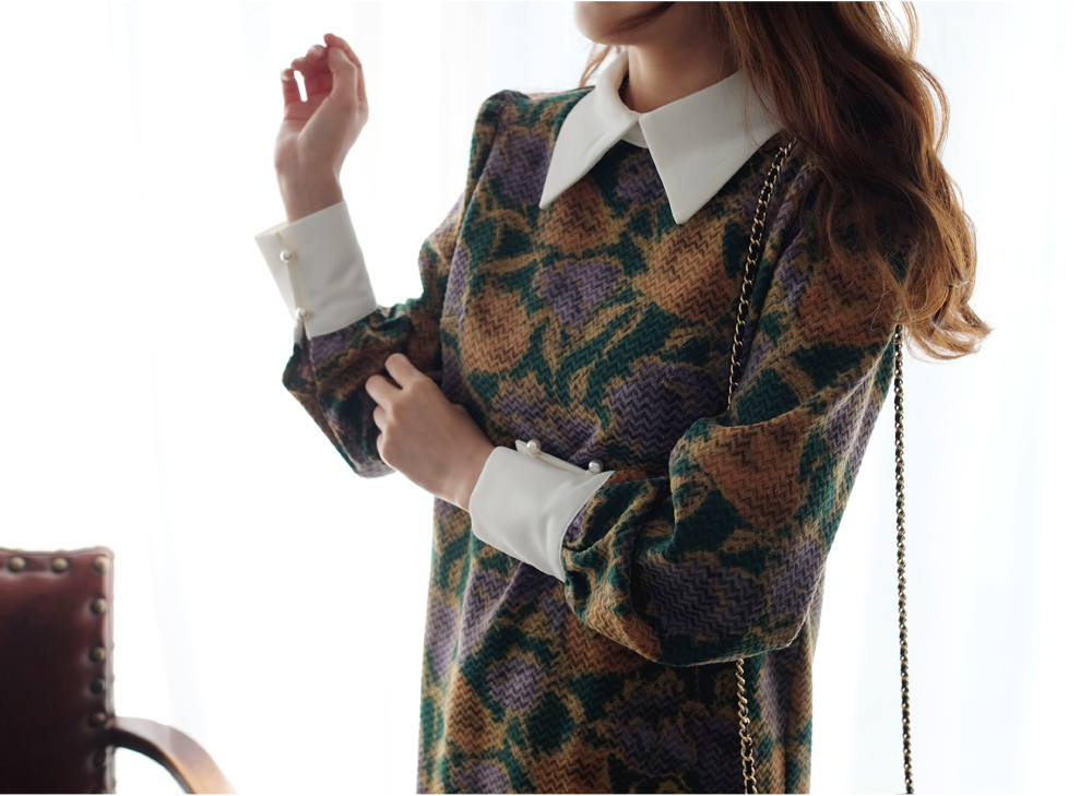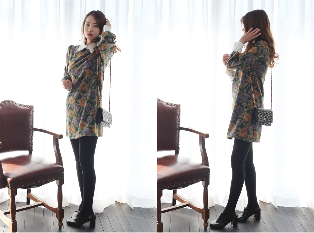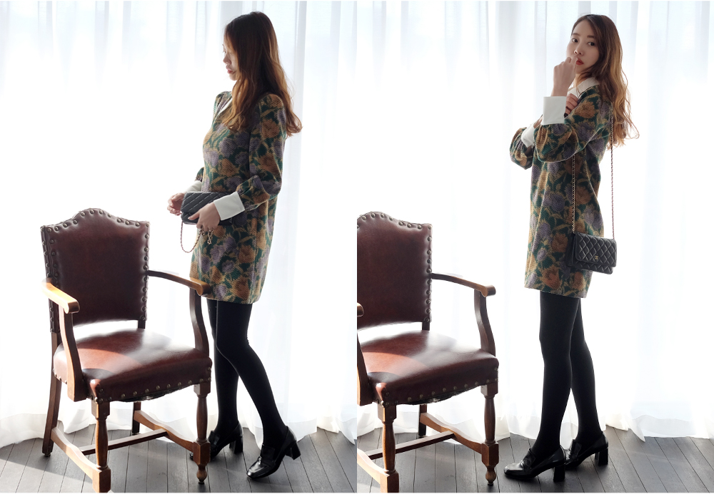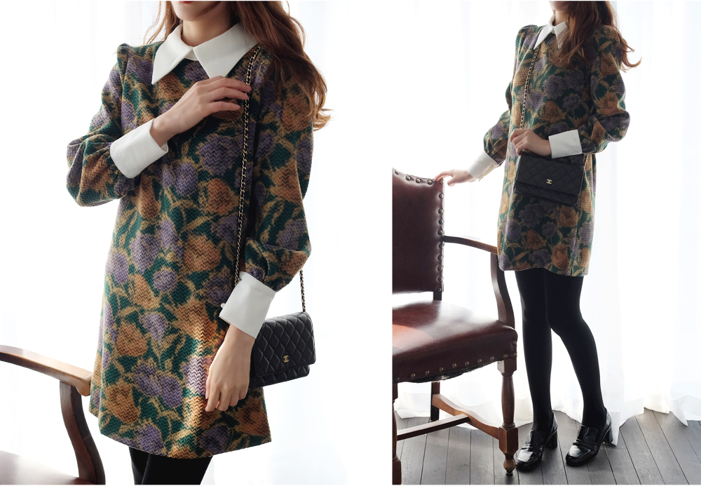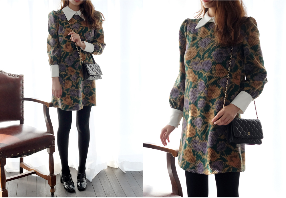 보기만해도 고급스러움이 묻어나는 트위드원단의 카라원피스에요:)