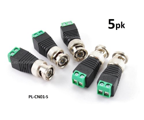 CablesOnline BNC Male Plug to AV 2-Screw Terminal Block Balum Connector(s) , 5-PACK (PL-CN01-5)