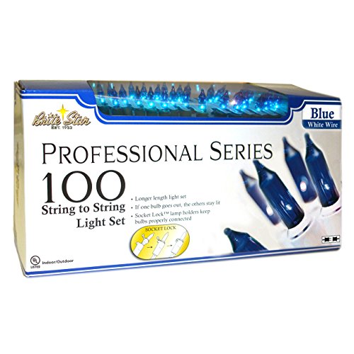 Brite Star 100 Count Professional Series Mini Light Set, White Wire, Blue
